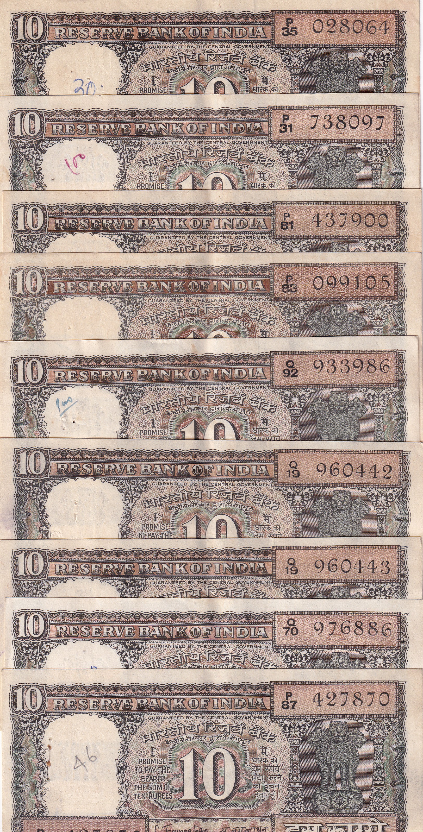 10 Rupees Governor S. Jagannath Black Boat (9 Pcs Lott) Note