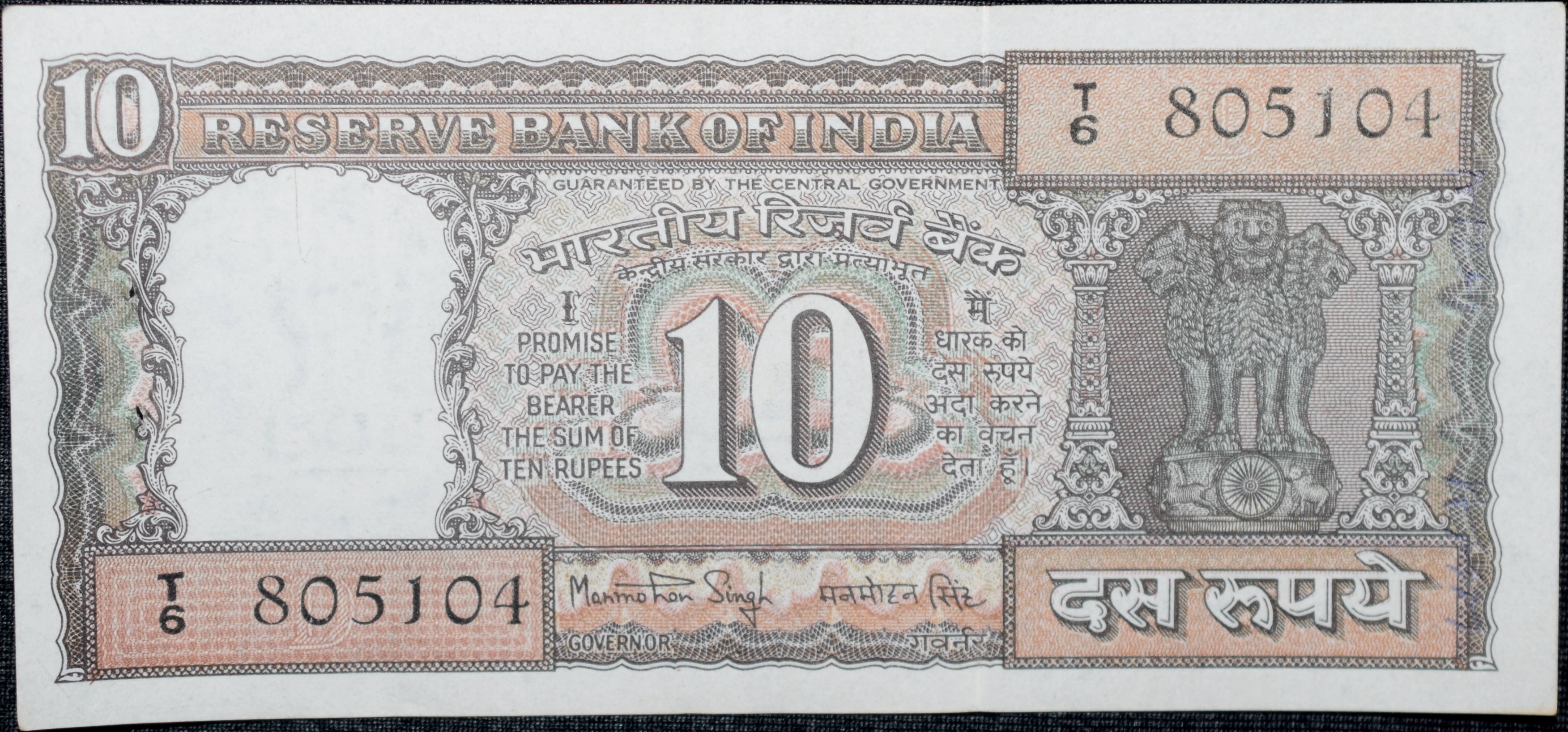 10 Rupees of Republic India (AD 1984-1985) Manmohan Singh Signature Black note with Boat UNC Grade