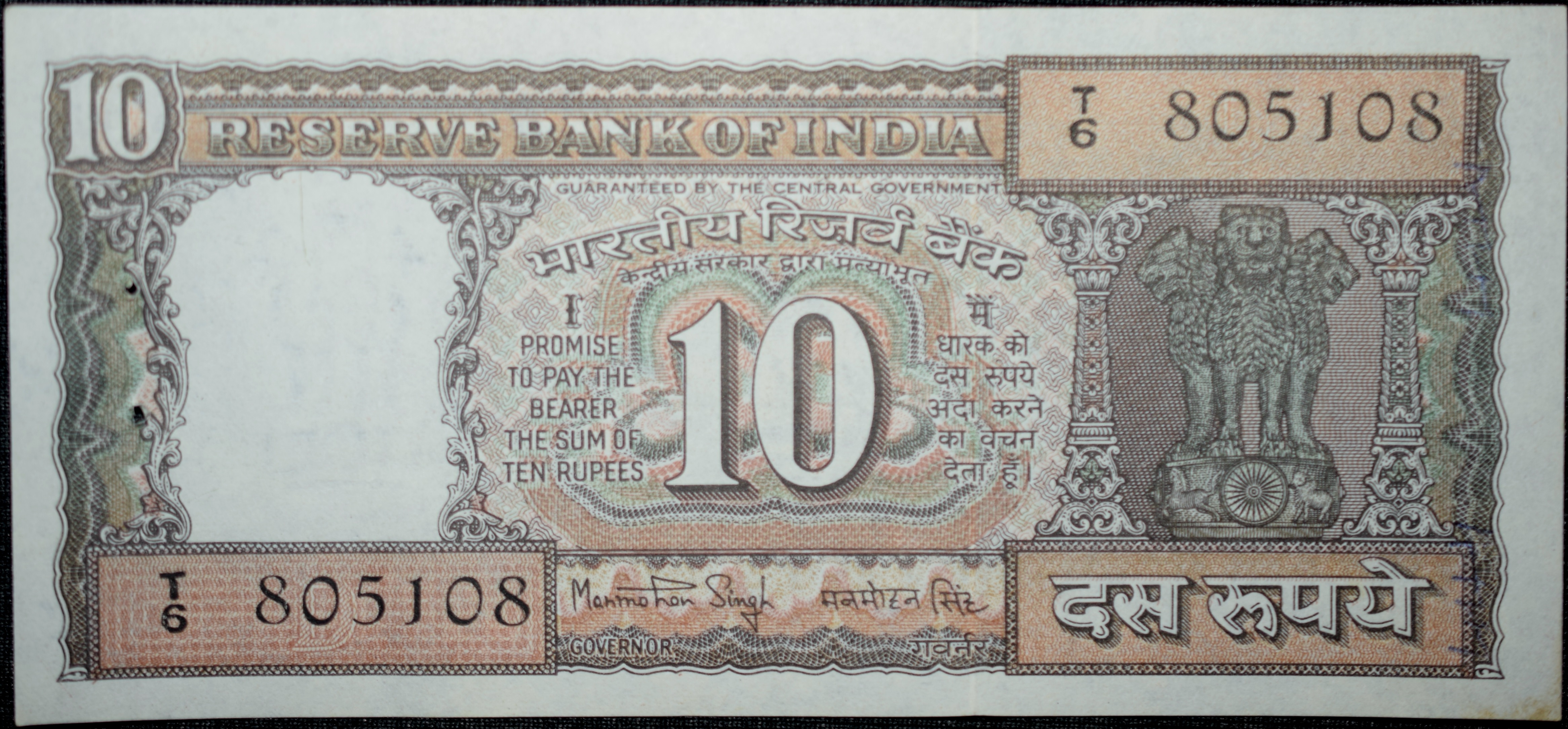 10 Rupees of Republic India (AD 1984-1985) Manmohan Singh Signature Black note with Boat UNC Grade