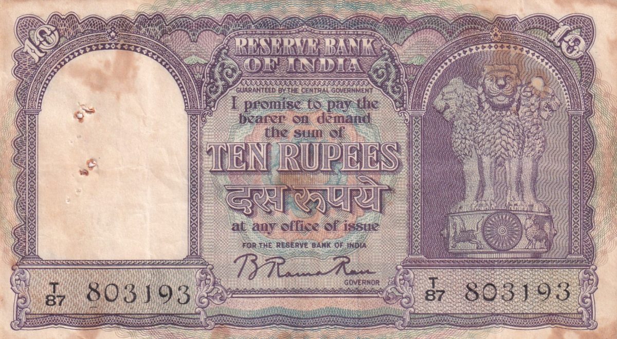 10 RUPEES OLD ISSUE BIG SIZE FAFDA GOVERNOR B.RAMA RAO
