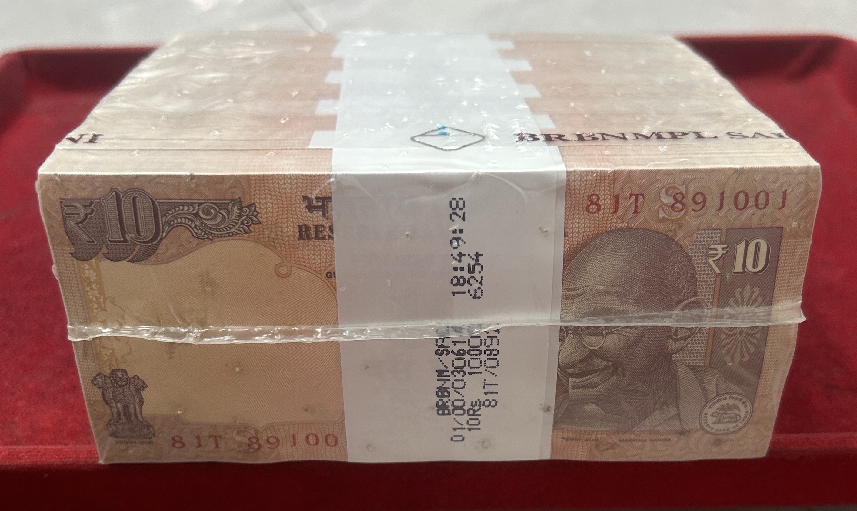 Unveil a piece of history with this sealed pack of 1000 notes of 10 Rupees each from the old issue featuring the signature of Raghuram Rajan. Issued by the Reserve Bank of India, this bundle encapsulates a significant era in Indian currency. The notes are in pristine condition, untouched and sealed, adding to their rarity and appeal to collectors. Raghuram Rajan, a renowned economist and former RBI Governor, lends his signature to these notes, making them a coveted piece for enthusiasts. Each note bears witness to the economic policies and events of its time, offering a glimpse into the past. Ideal for collectors seeking a valuable addition to their numismatic collection, this bundle holds both historical significance and potential investment value. The sealed packaging ensures the preservation of these notes for years to come, making them a desirable find for any collector.