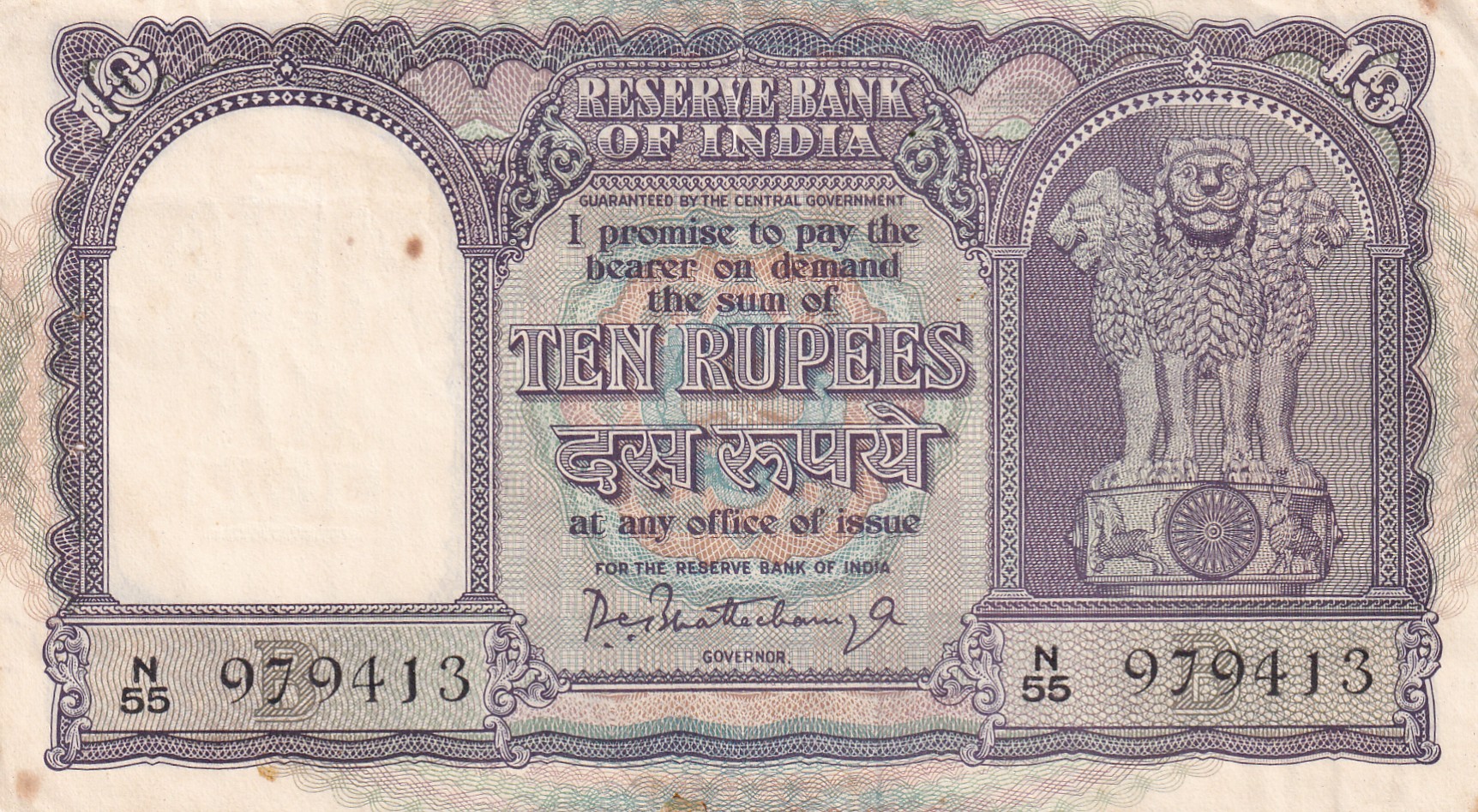 10 RUPESS FAFADA GOVERNOR P.C BHATTACHARYA RARE NOTE