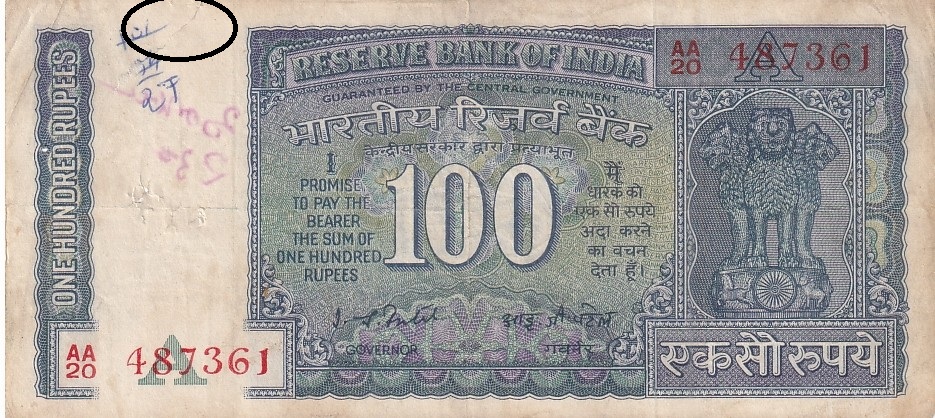 100 Rs White Strip Old Issue I G PATEL Used Very Fine Torn Note #8