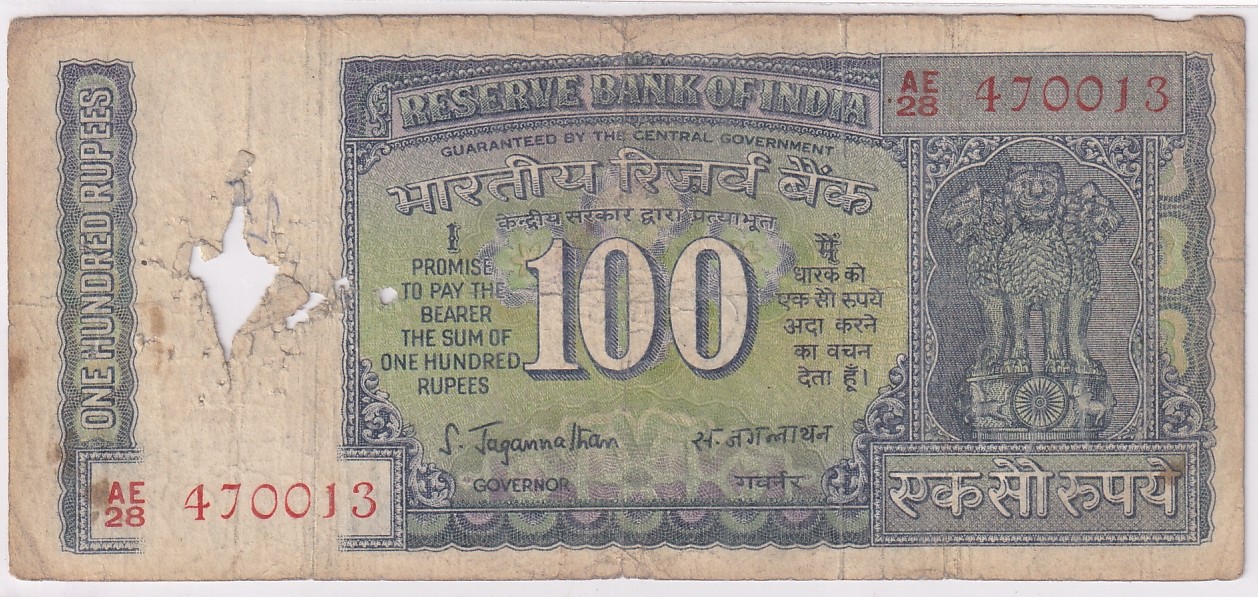 100 Rs White Strip Old Issue S Jagannathan Used Fine Note #2