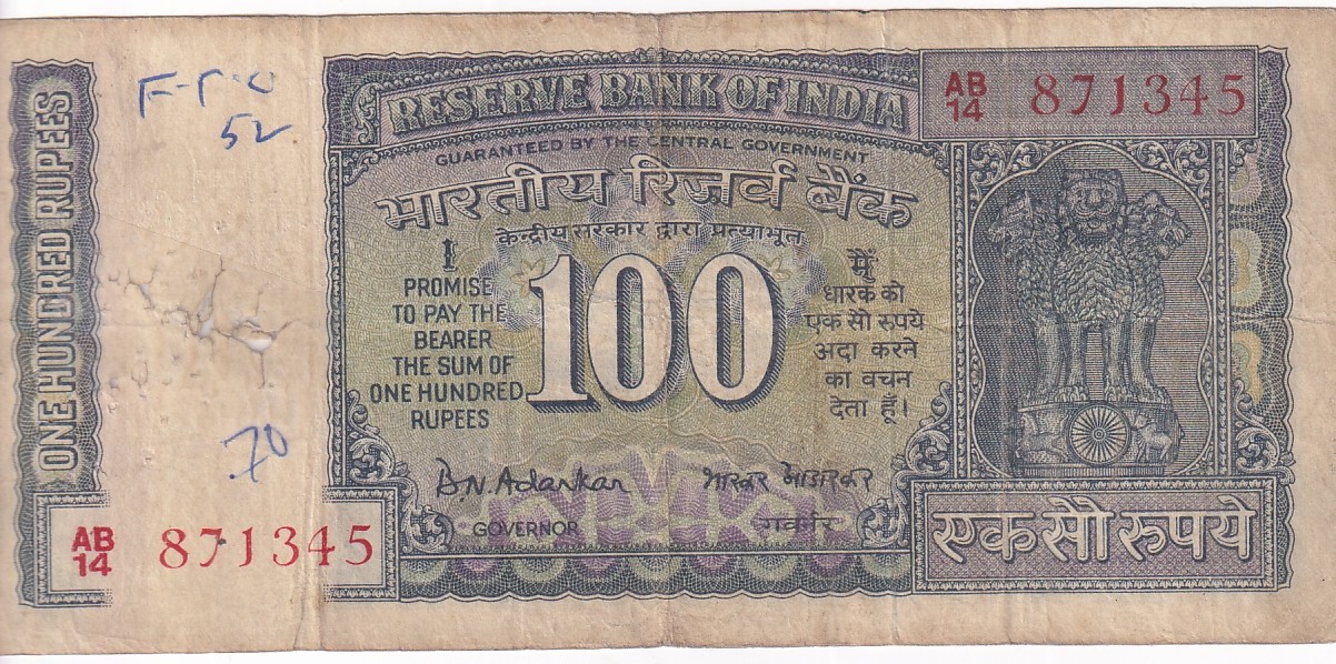 100 Rupees B N Adarkar Mahatma Gandhi Reading Bhagavad Gita Note #1