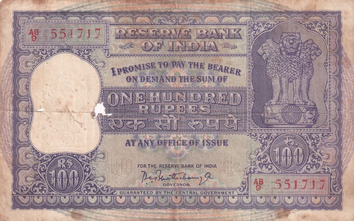 100 RUPEES BIG SIZE FAFDA P.CBHATTACHARYA RARE NOTE