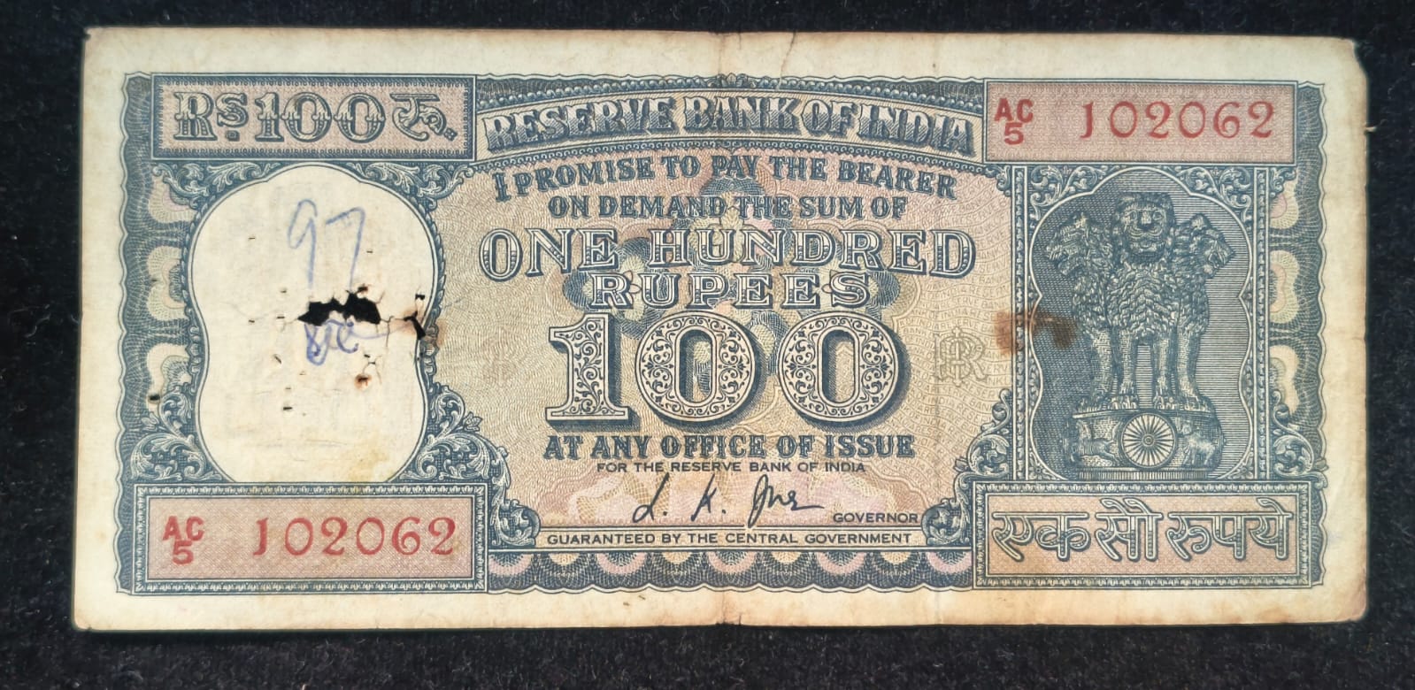 100 RUPEES DIAMOND GOVERNOR L.K JHA RARE NOTE