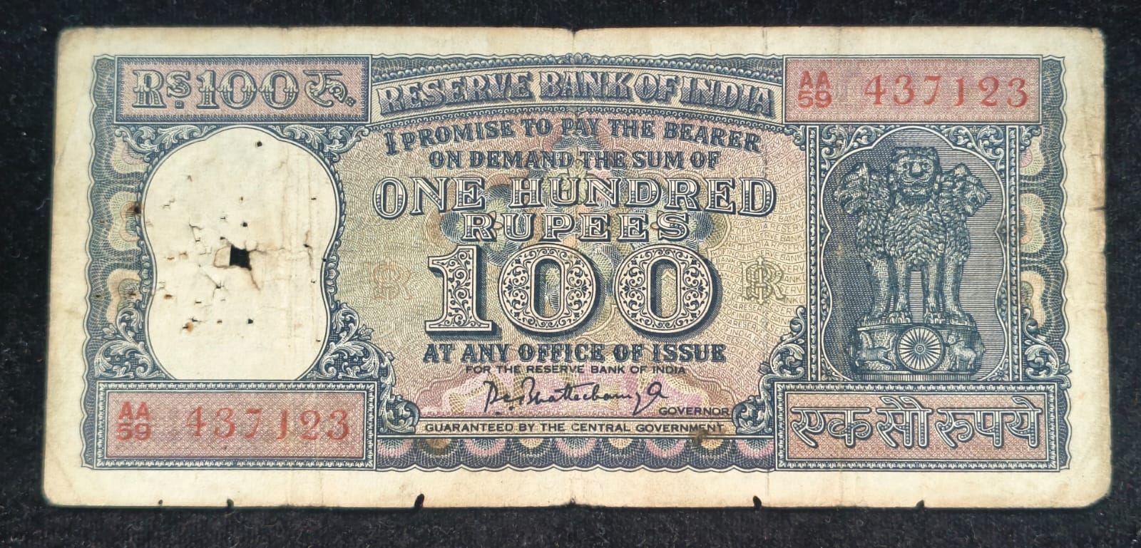 100 RUPEES DIAMOND GOVERNOR P.C.BHATTACHARYA RARE NOTE