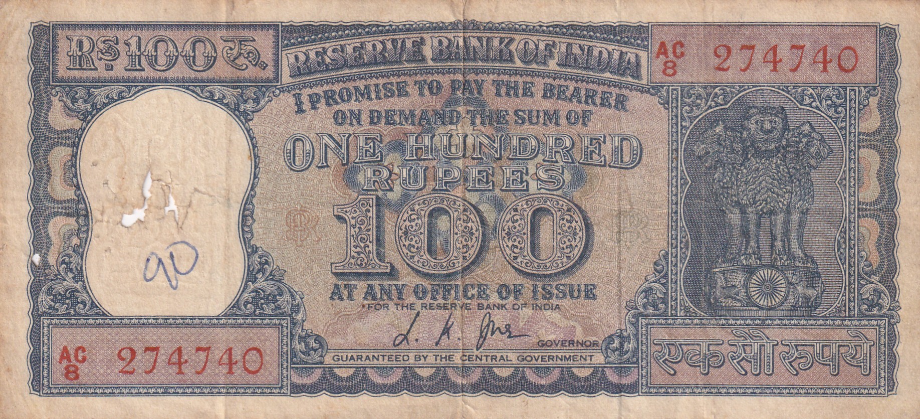 100 Rupees Diamond Issue Governor L.K Jha Rare Note