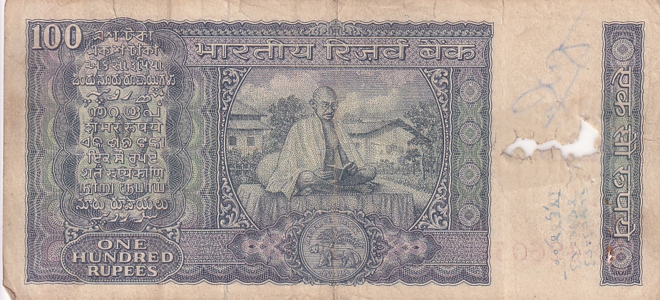 100 Rupees L K JHA Mahatma Gandhi Reading Bhagavad Gita Note #4