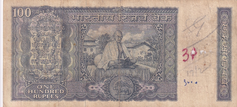 100 Rupees L K JHA Mahatma Gandhi Reading Bhagavad Gita Note #8
