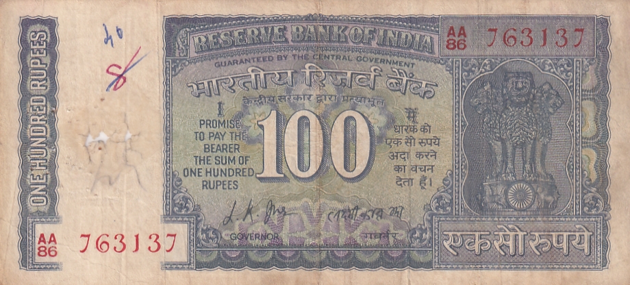 100 Rupees L K JHA Mahatma Gandhi Reading Bhagavad Gita Note #9