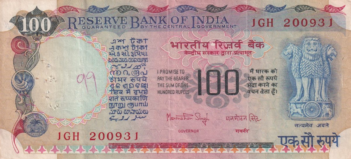 100 RUPEES OLD ISSUE GOVERNOR MANMOHAN SINGH AGRICULTURAL RARE NOTE