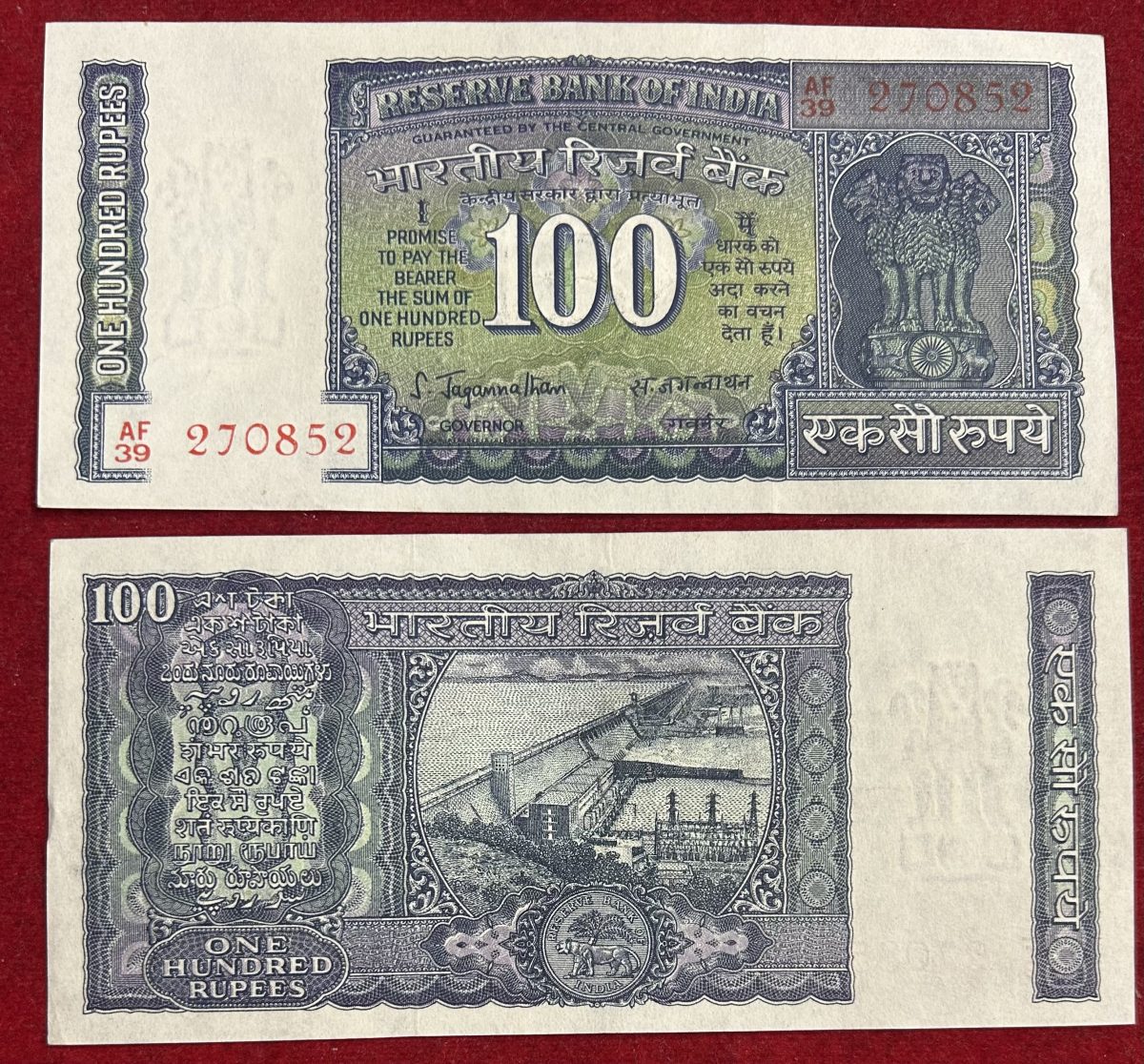 100 rupees Old note, governer, S.Jagannathan Gem 💎 Unc