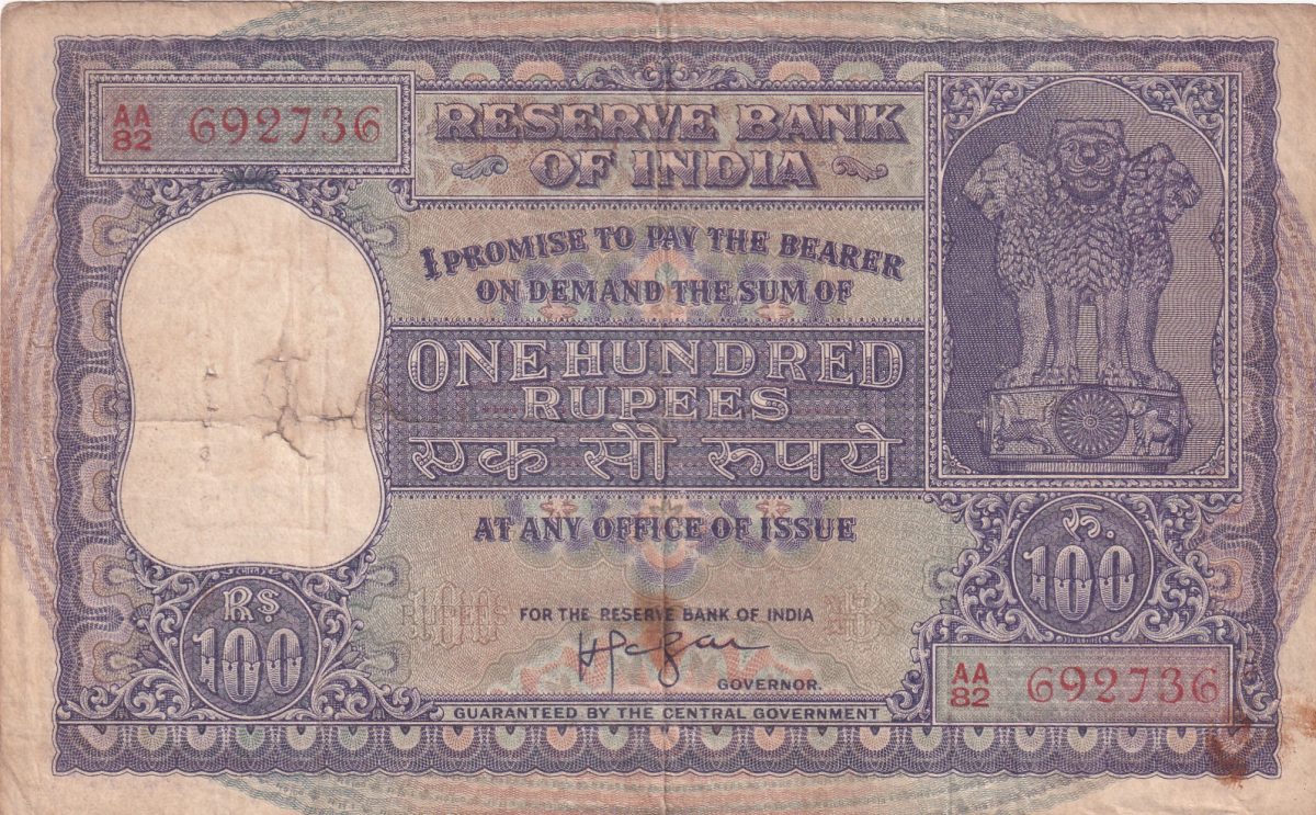 Step back in time with this incredibly rare and fascinating 100 Rupees Old Series Fafda note from the big size era. Issued by notable governors, this collectible piece carries a rich history and significance. The note features intricate designs and iconic signatures that make it a standout piece for any collector. Its rarity and unique attributes, such as its large size and specific governor signatures like Iyenger, add to its allure. This banknote encapsulates a piece of historical currency that holds immense value for enthusiasts and collectors alike. Whether you’re a seasoned numismatist or a beginner looking to start a collection, this 100 Rupees Fafda note is a must-have addition that promises both historical insight and investment potential. Delve into the past and own a piece of India’s monetary heritage with this exceptional banknote.