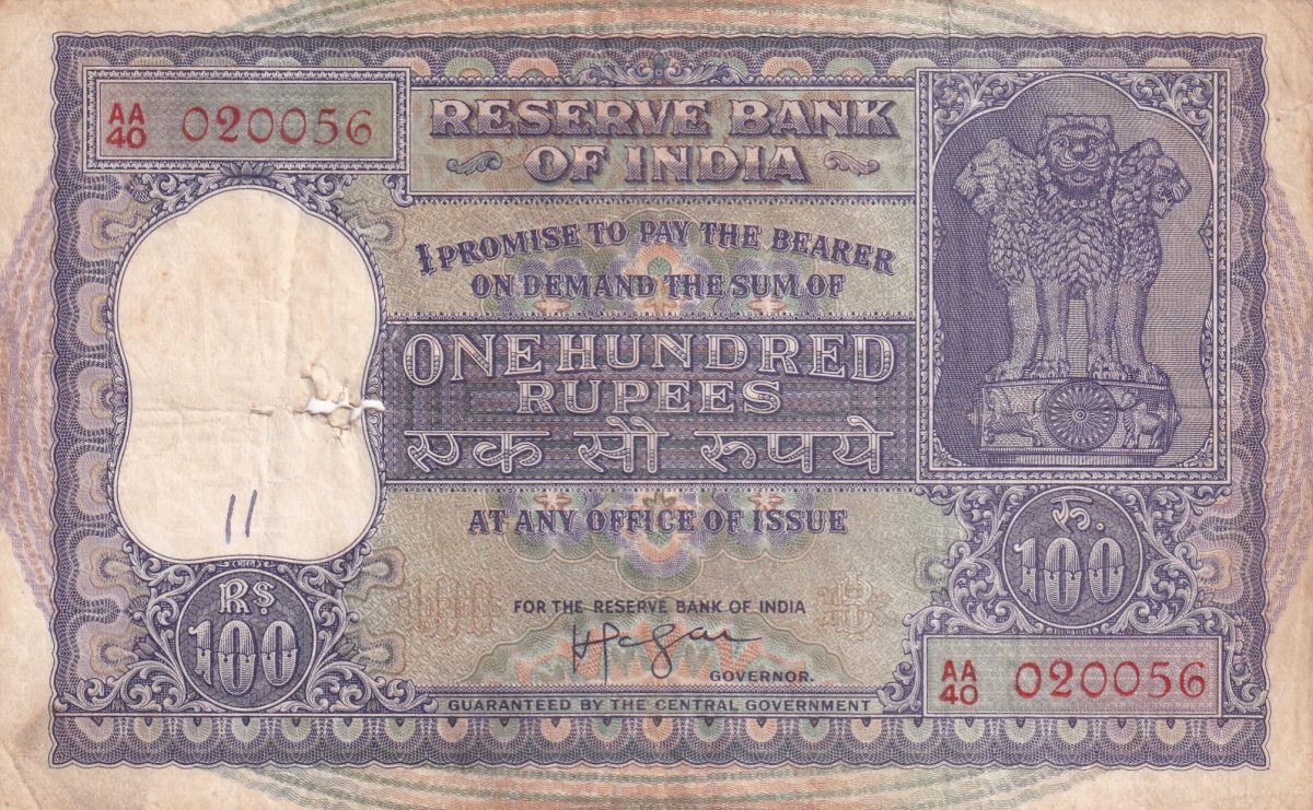 100 Rupees Old Series Fafda note Big Size Very Rare Governor , Iyenger