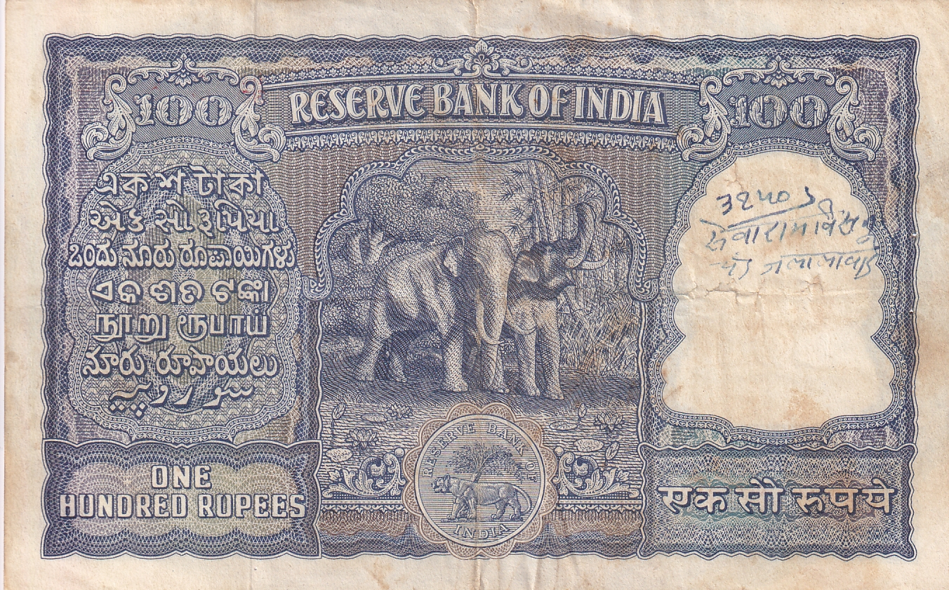 100 Rupees Very Old HVR IYENGAR Big Size Elephant Issue Note Rare #2