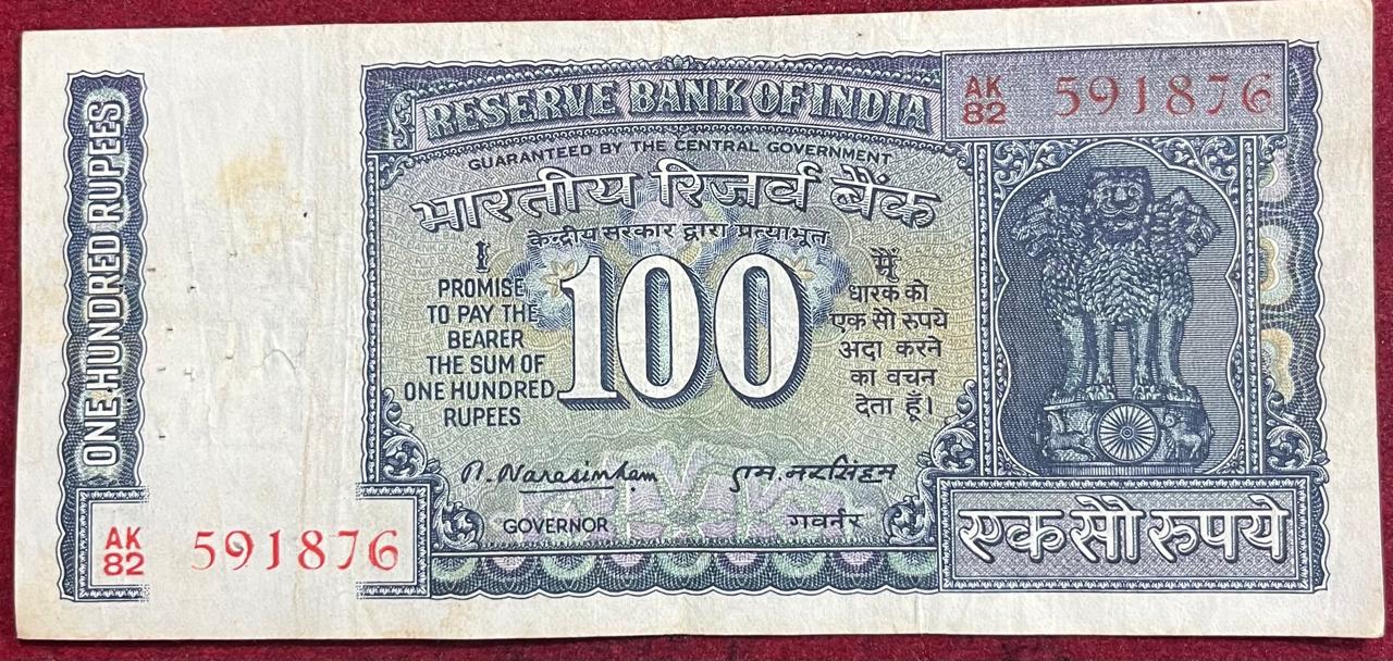 100 RUPEES WHITE PATTIE GOVERNOR M.NARASIMHAM RARE NOTE