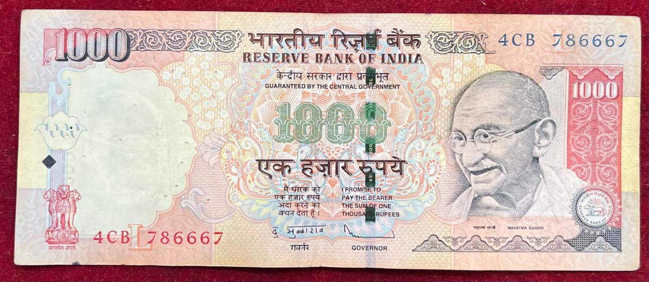 1000 RUPEES fancy number starting 786 GOVERNOR D. SUBBRAO ( L INSERT 2010 ) RARE NOTE
