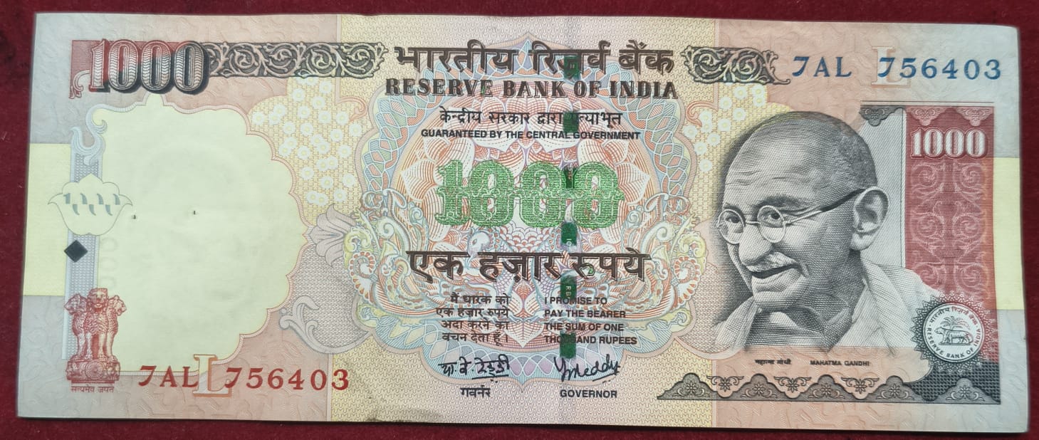 1000 Rupees GOVERNOR Y.B REDDY ( L INSERT 2006 ) TOP CONDITION RARE NOTE
