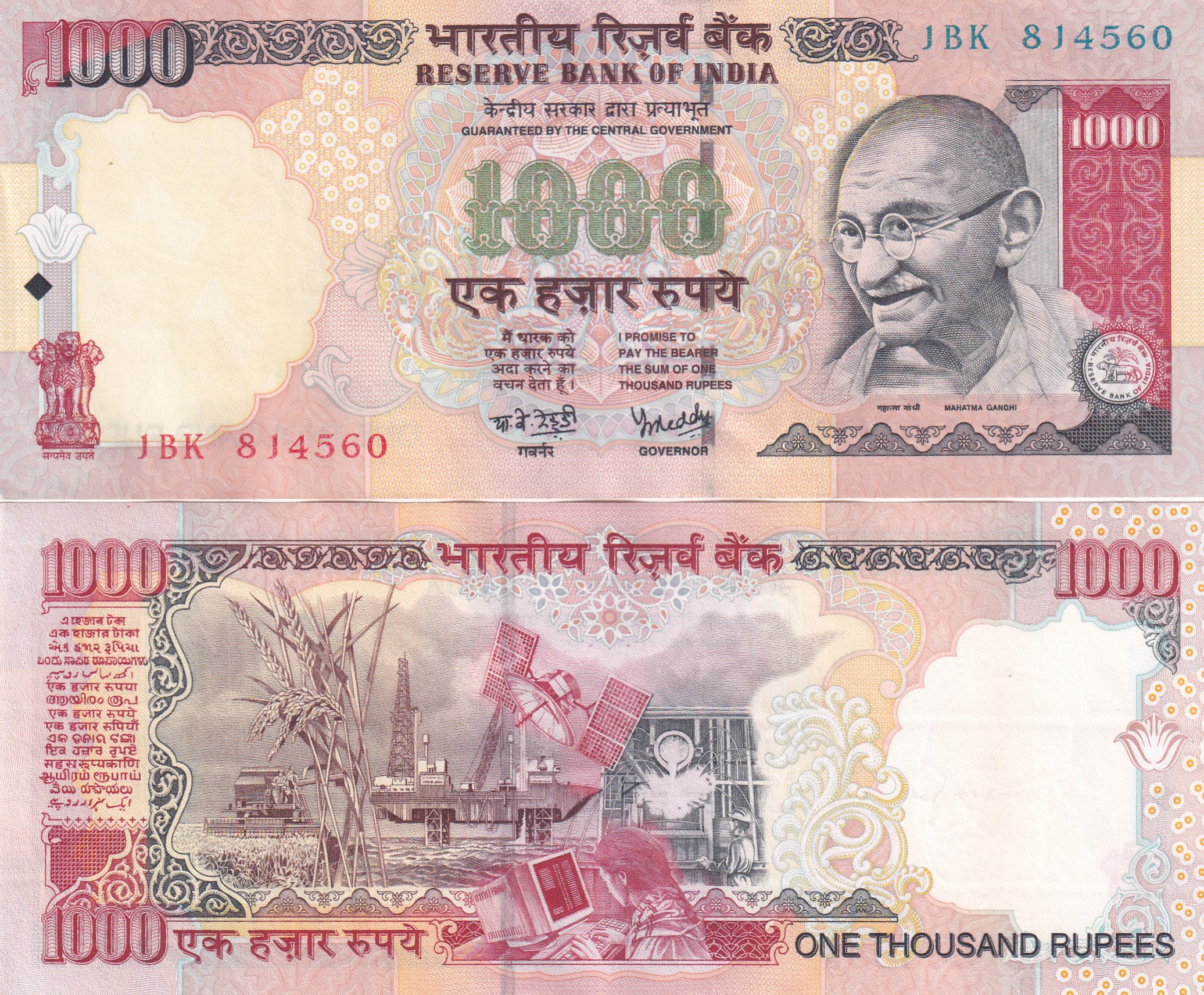 1000 Rupees Governor Y.B.REDDY ( Without Insert Without Year) Rare UNC Note