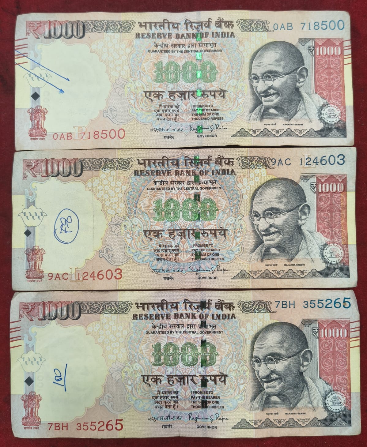1000 RUPEES TELESCOPY NUMBER ( 3 DIFFERENT INSERT) GOVERNER RAGHU RAM RARE NOTE