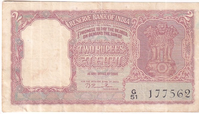 2 Rupees B Rama Rao Half Tiger Note Rare