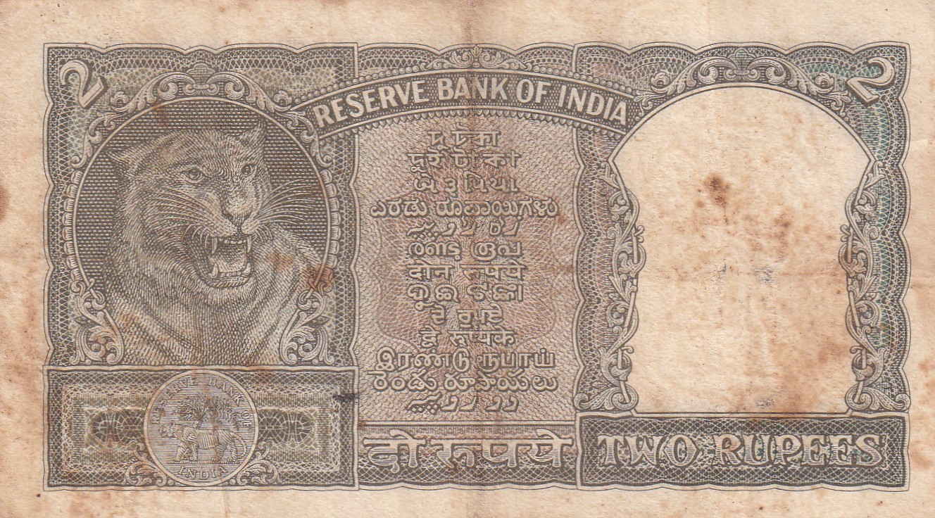 2 Rupees Green Note HALF TIGER Governor P.C.Bhattacharya Rare Note