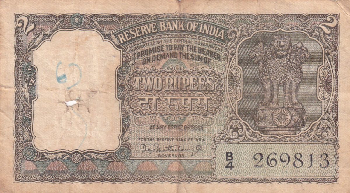 Delve into the fascinating world of numismatics with this rare and captivating 2 Rupees Half Tiger Green Note featuring Governor P.C. Bhattacharya’s signature. Issued in a bygone era, this banknote holds historical significance and serves as a testament to India’s rich monetary heritage. The vivid green hue and intricate design depicting a half-tiger make this note a standout piece for collectors seeking unique additions to their collection.