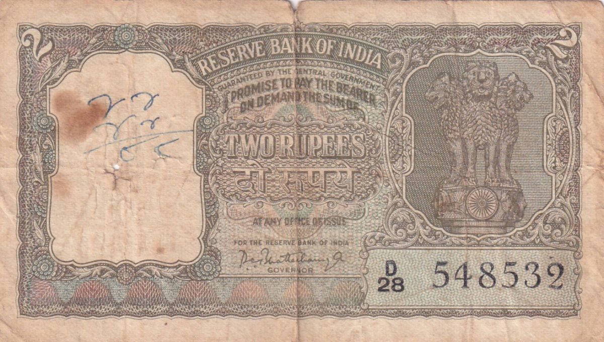 Step back in time with this rare 2 Rupees Half Tiger banknote featuring Governor P.C. Bhattacharya. Issued in a striking green color, this collectible piece dates back to a significant era in Indian history. The note showcases a unique blend of artistry and historical significance, making it a prized possession for any collector. Governor P.C. Bhattacharya’s signature adds an authentic touch to this piece, further enhancing its value. This banknote is not just a piece of currency but a window into the past, offering a glimpse into the economic and political landscape of its time. With its rarity and historical importance, this green note is a must-have for enthusiasts looking to add a piece of Indian monetary history to their collection.