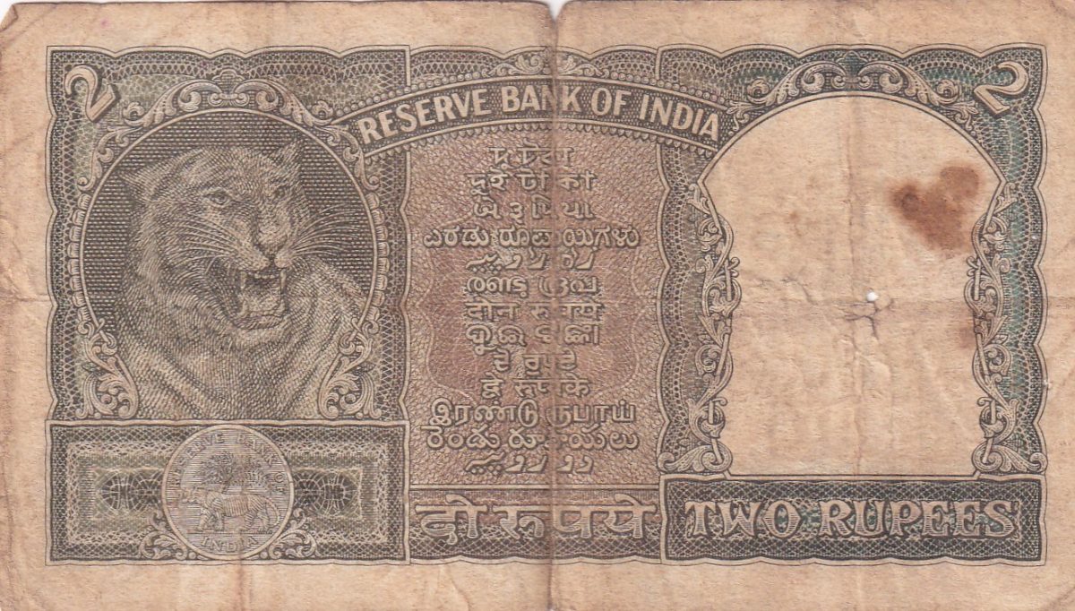 🌟 Rare Green 2 Rupees Half Tiger banknote