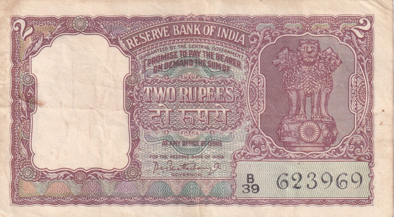 2 Rupees Half Tiger Governor P.C.Bhattacharya Rare Note