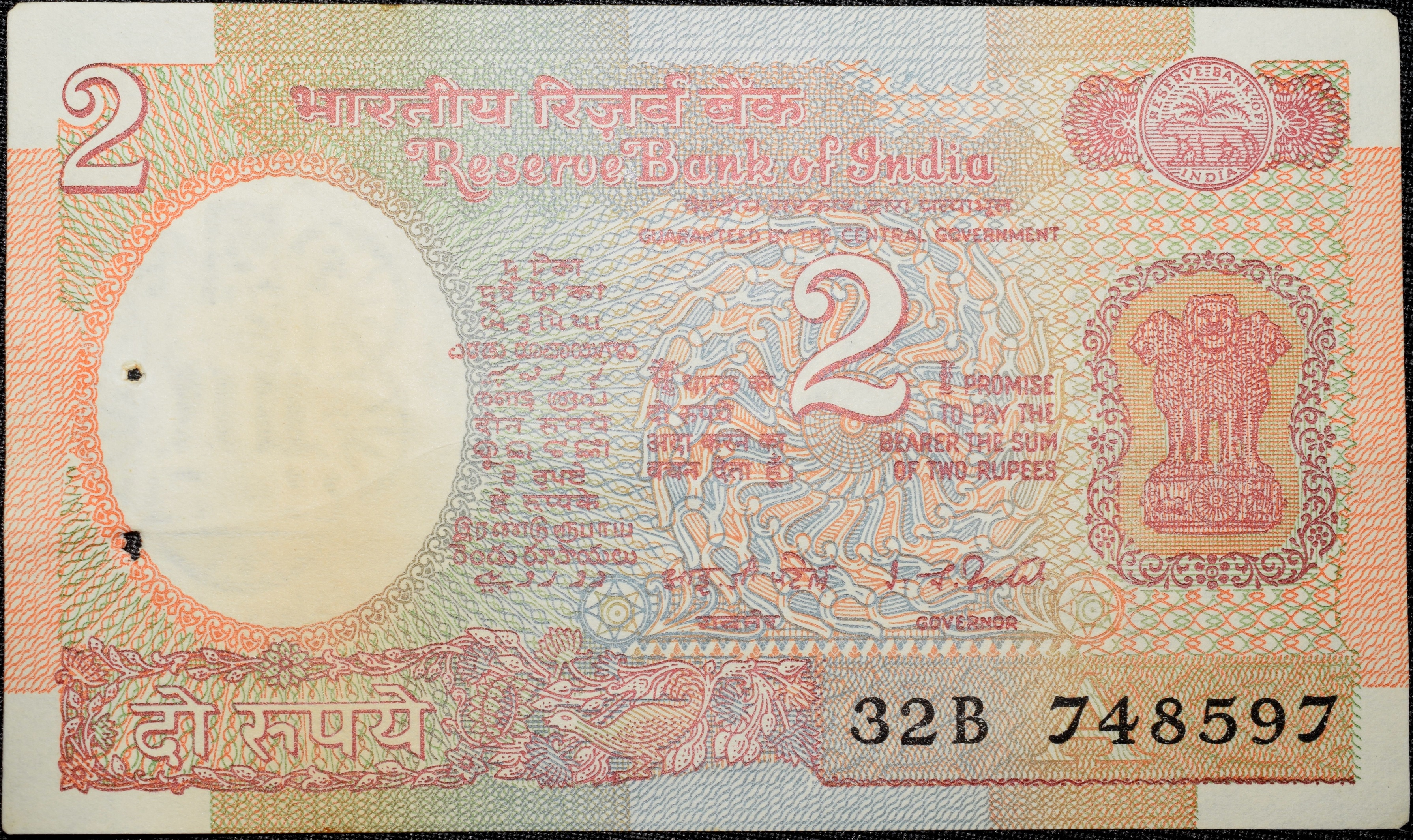 2 Rupees of Republic India (AD 1977-1978) I.G.Patel Signature