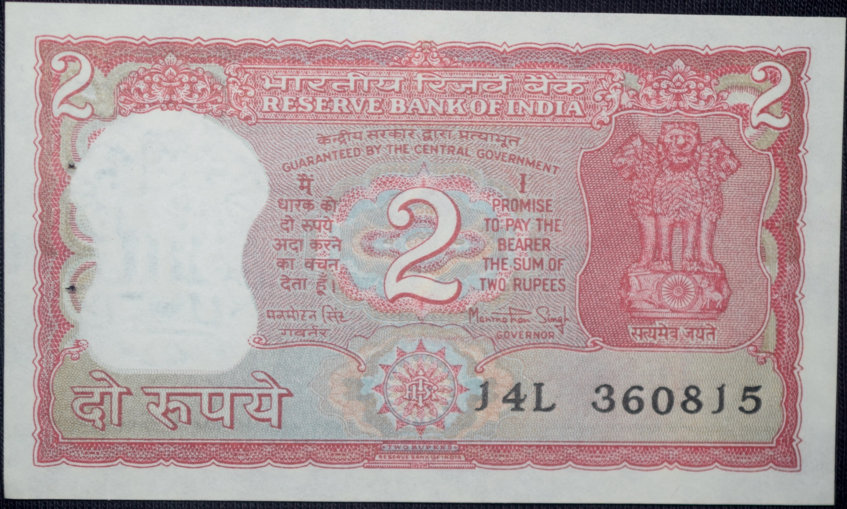 Republic India, (AD 1990-1992), 2 Rupees, Manmohan Singh Signature with Full Tiger figure with 13 regional languages on the back, UNC Grade as per Image.