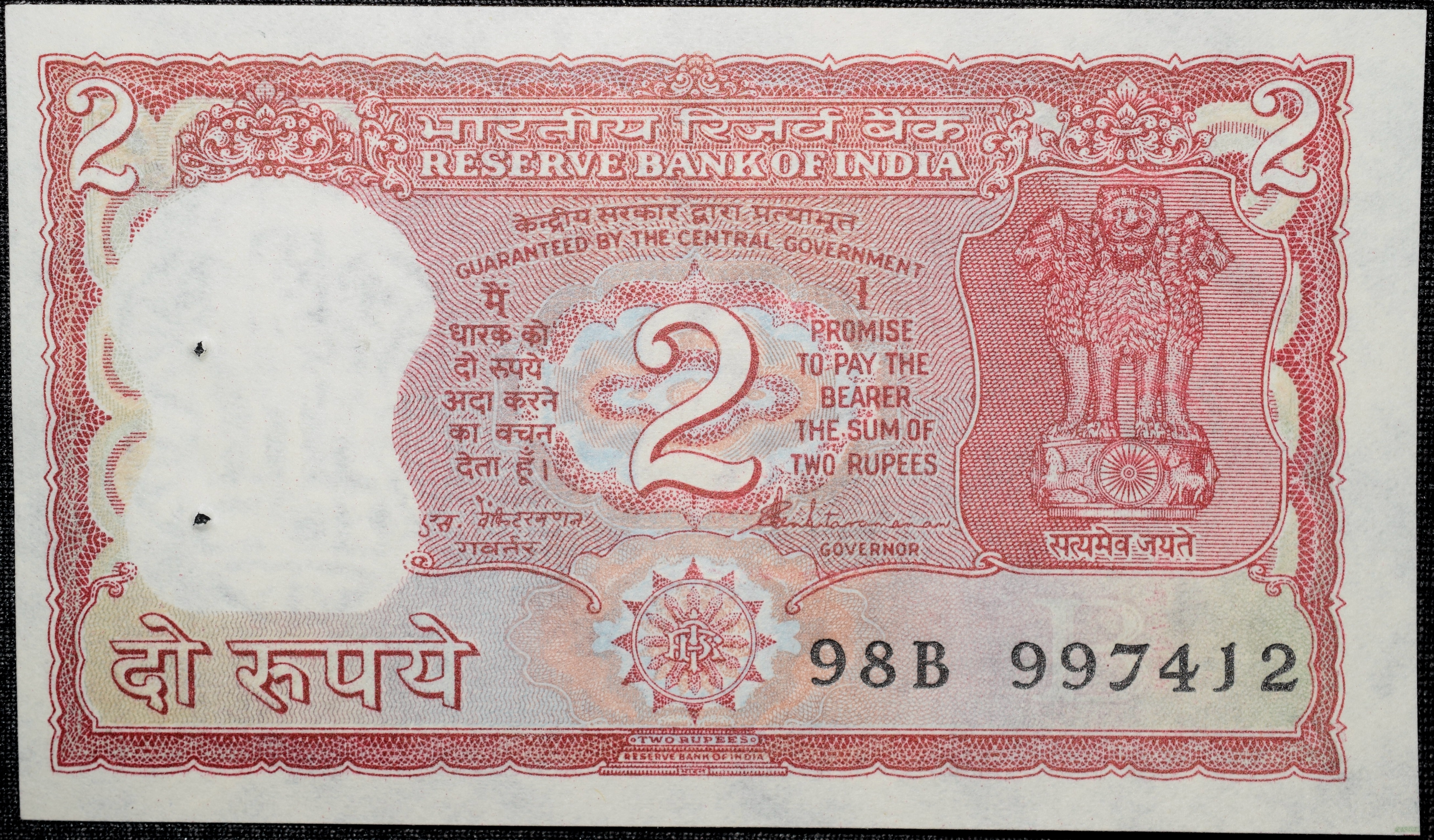 2 Rupees of Republic India (AD 1990-92) S. Venkitaramanan Signature with Full Tiger figure with 13 regional languages on the back