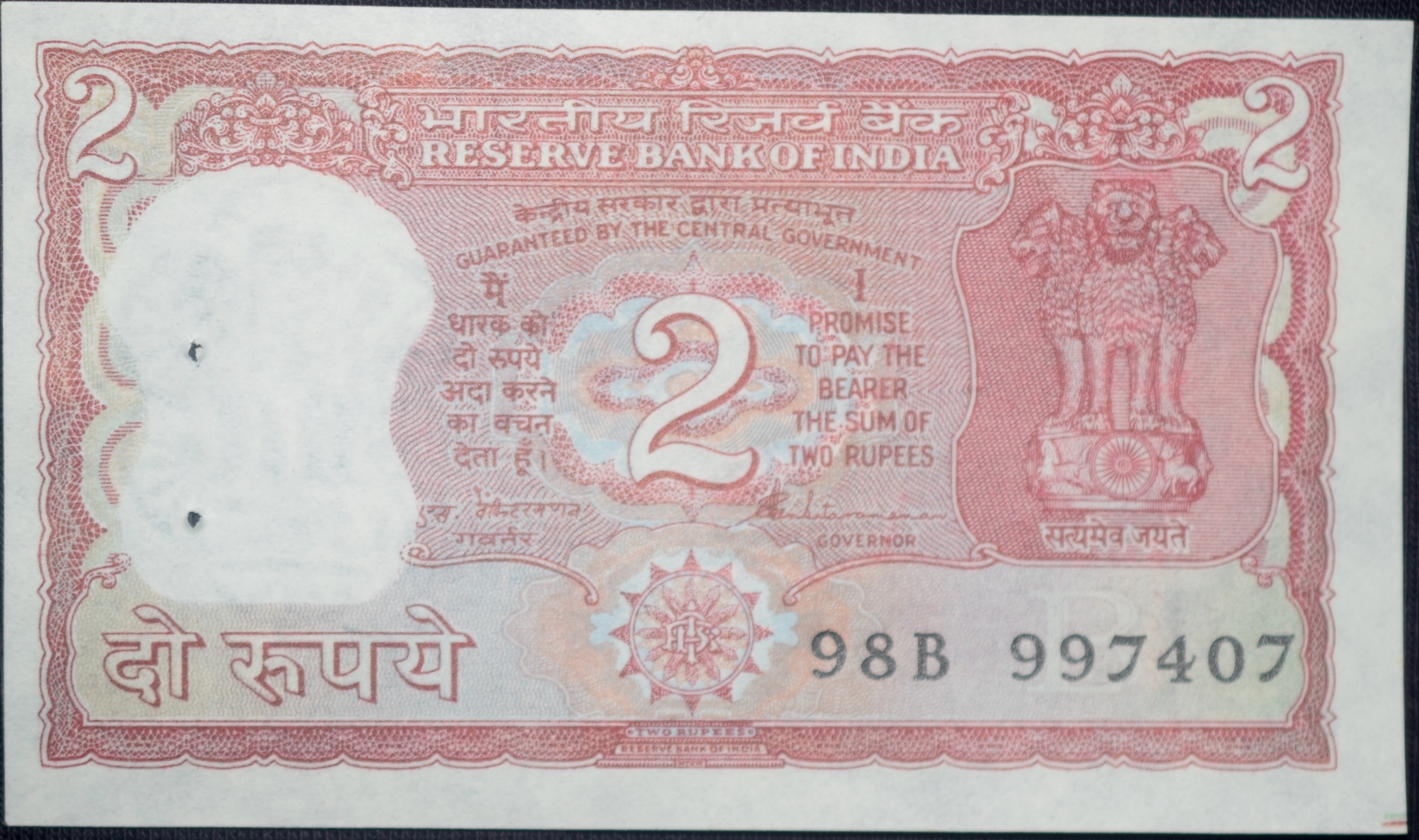 2 Rupees of Republic India (AD 1990-92) S. Venkitaramanan Signature with Full Tiger figure with 13 regional languages on the back