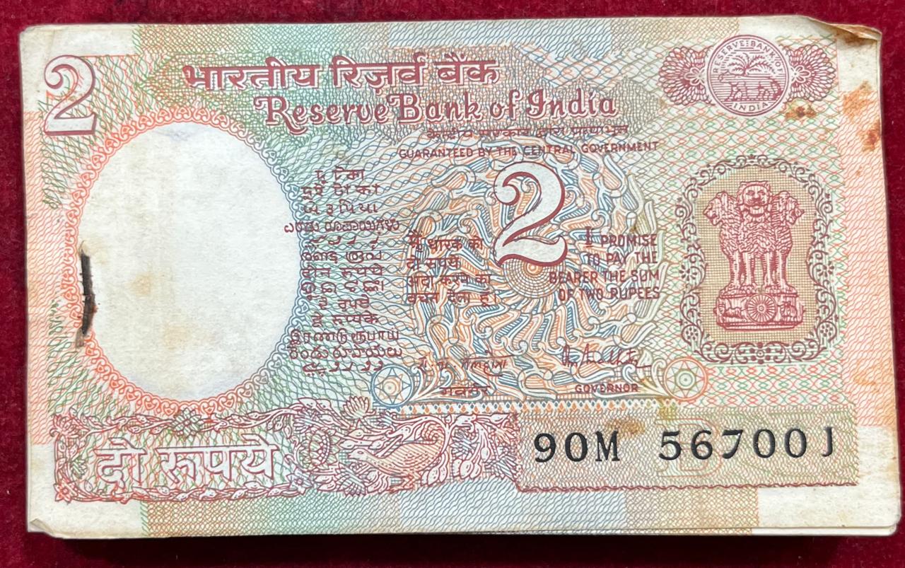 2 RUPEES SATELLITE GOVERNOR R.N MALHOTRA SERIAL PACKET RARE NOTE