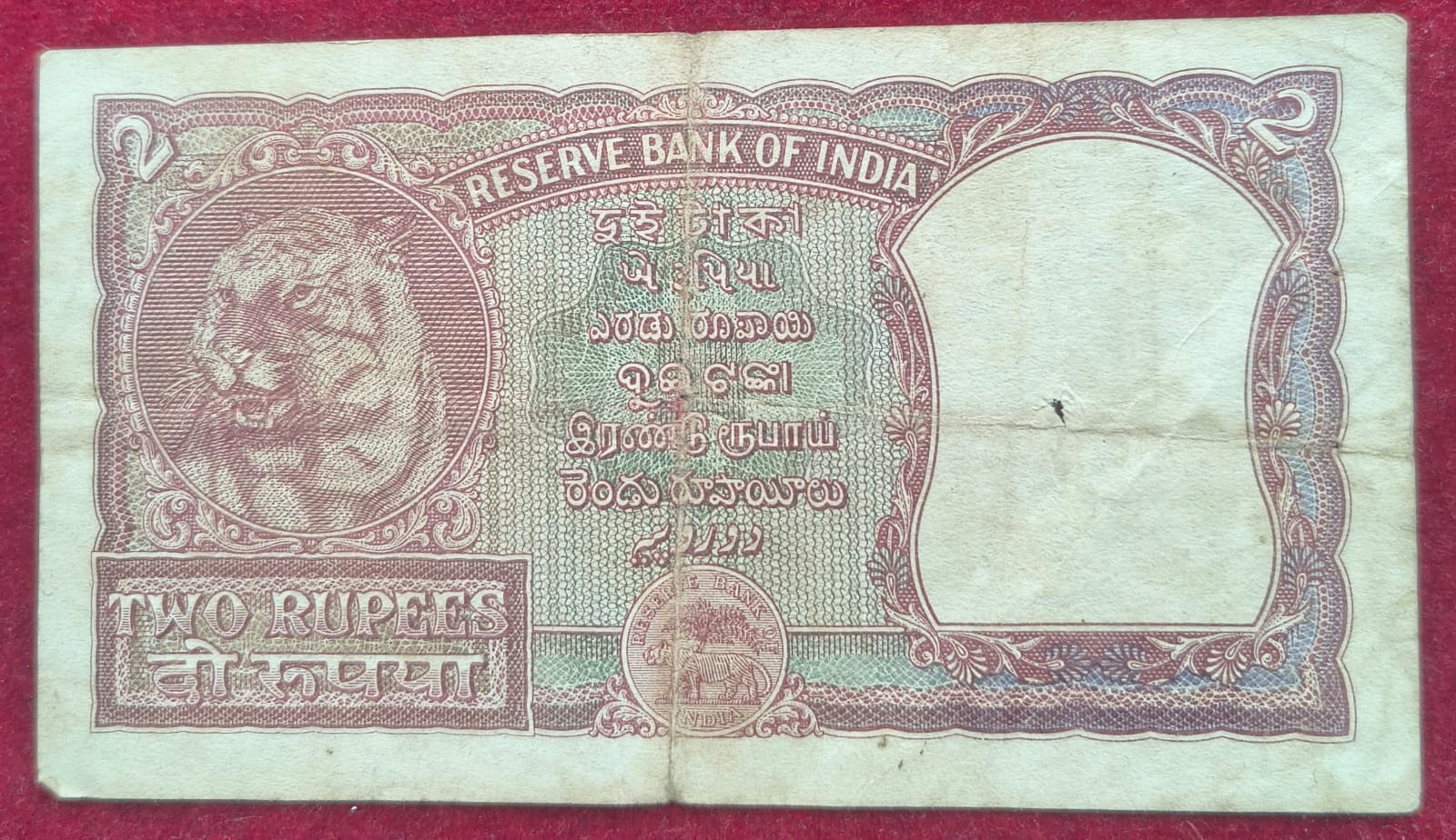 2 RUPEES TIGER ISSUE GOVERNOR B.RAMARAO RARE NOTE
