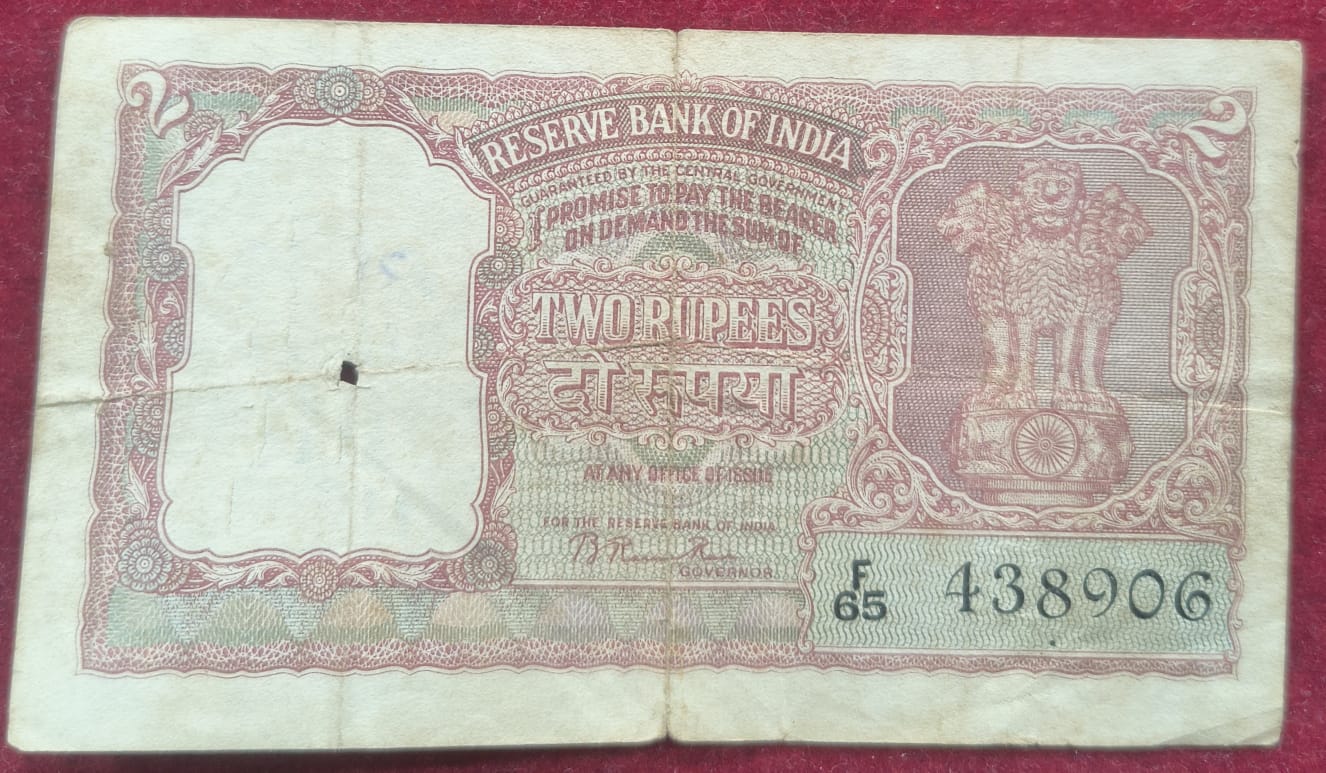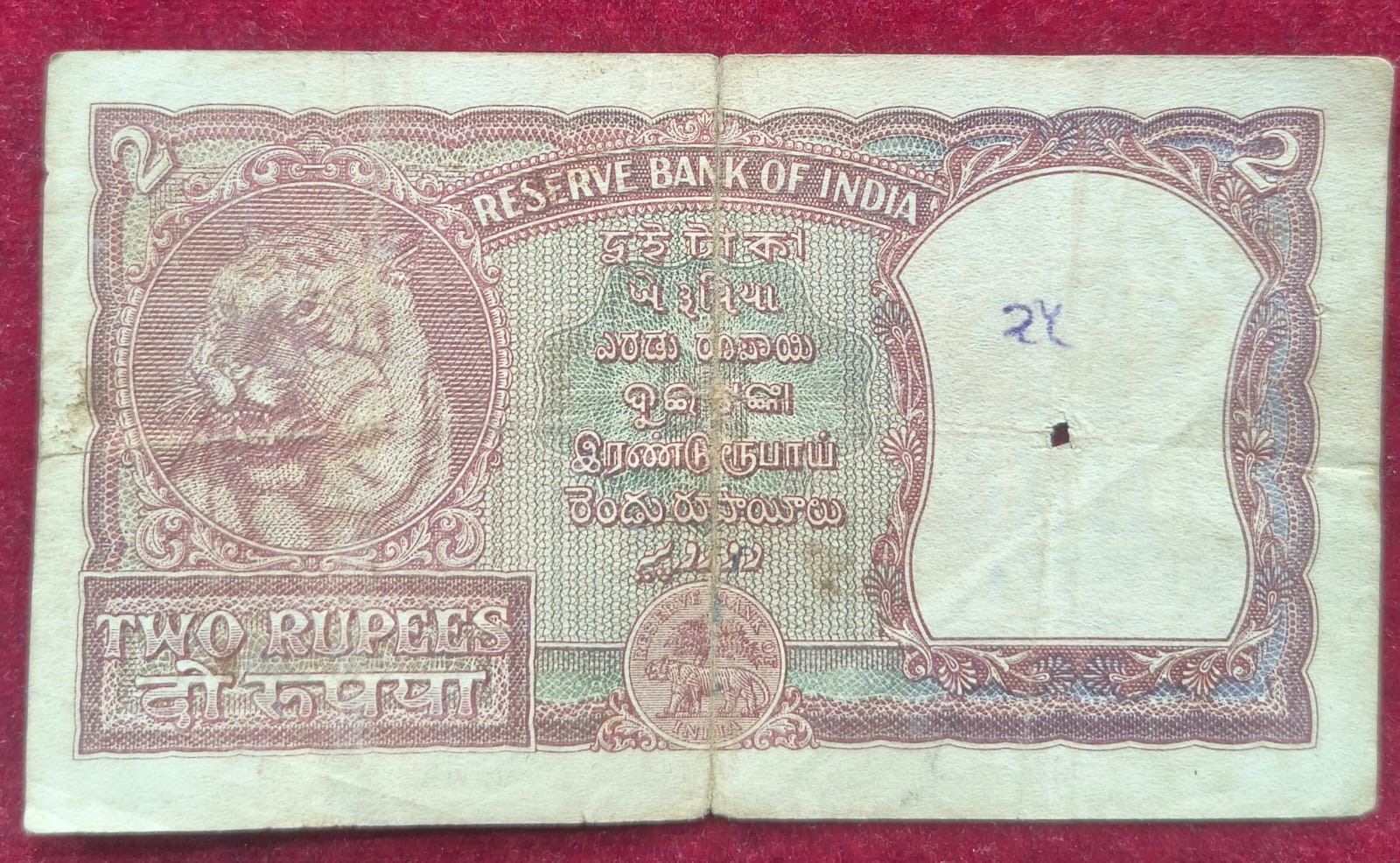 2 RUPEES TIGER ISSUE GOVERNOR B.RAMARAO RARE NOTE