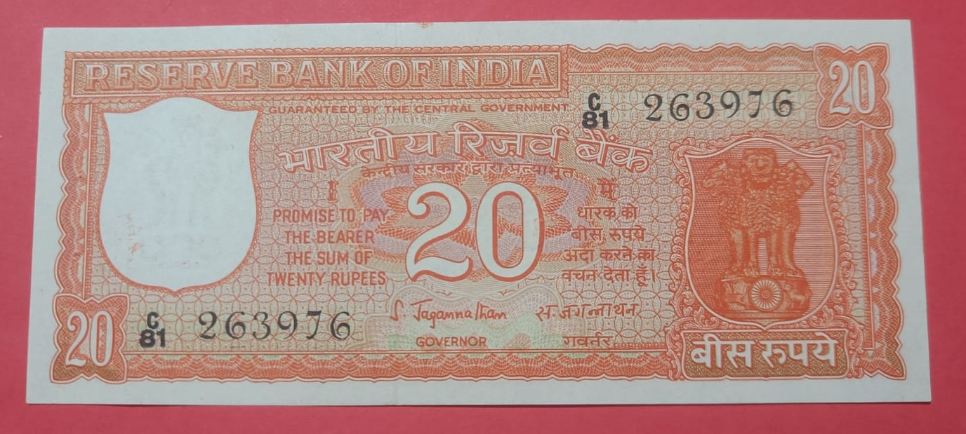 20 Rs Bank Note S Jagannathan Governor Parliament Issue GEM UNC Condition