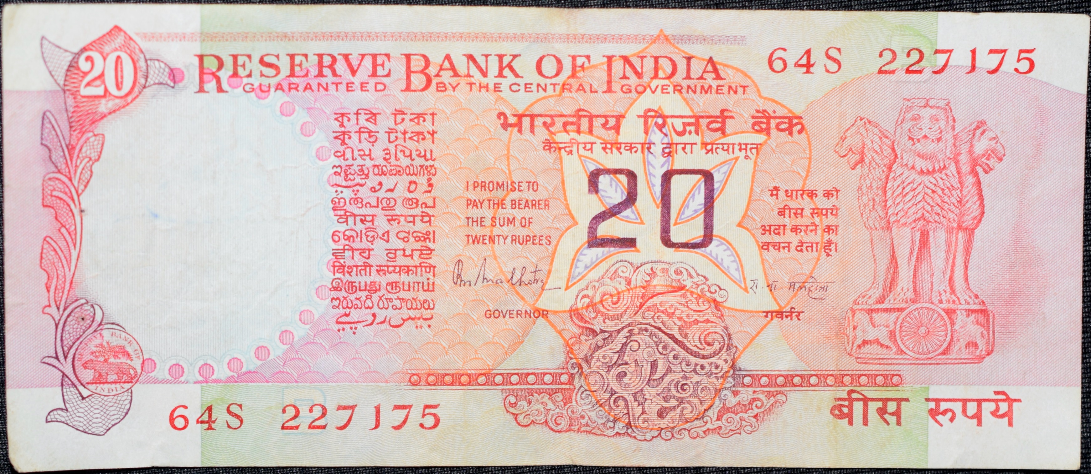 20 Rupees of Republic India (AD 1985-1990) R.N.Malhotra Konark Wheel Series