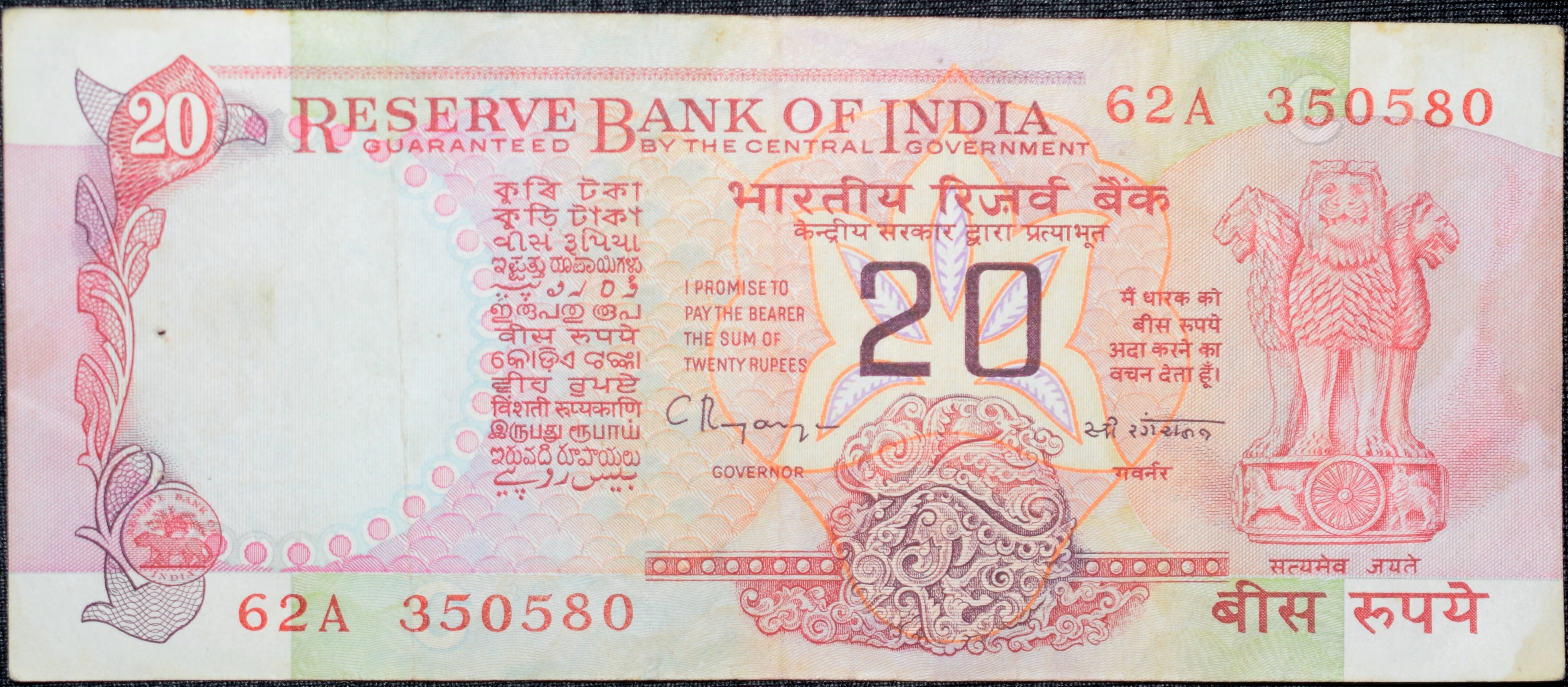 20 Rupees of Republic India (AD 1992) C.Rangarajan Konark Wheel Series