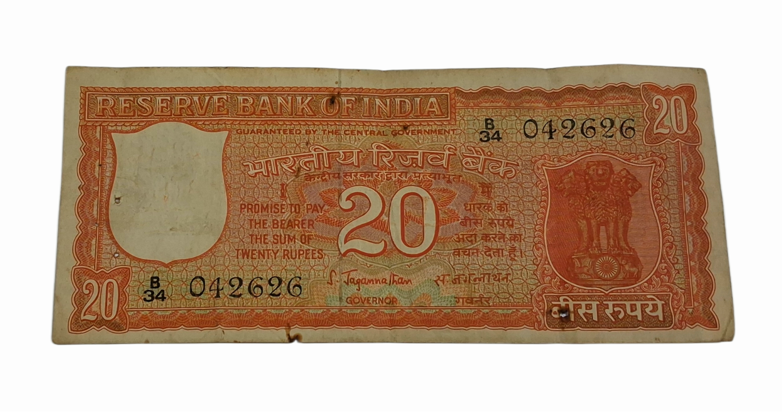 20 Rupees Old PARLIAMENT Issue Sign S.JAGANNATHAN **SCARE** Collectable Grade.