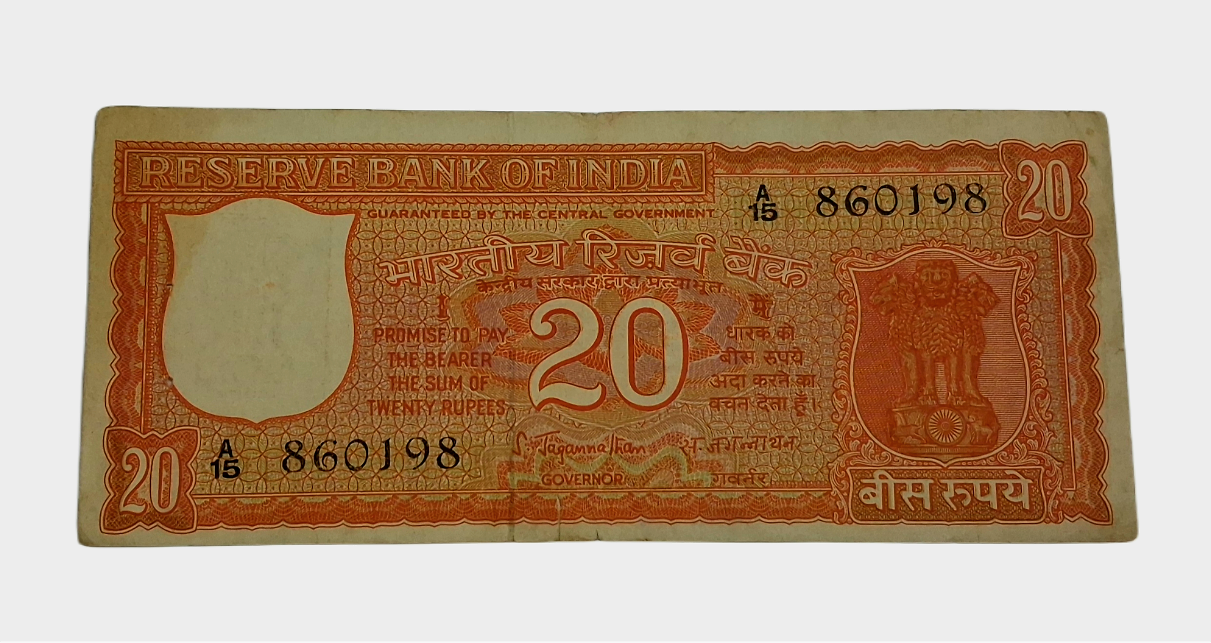20 Rupees Old PARLIAMENT Issue Sign S. JAGANNATHAN with “A” Prefix FIRST Issue CLOSED LOTUS Catalog E1 **V.RARE** High Collectable Grade.