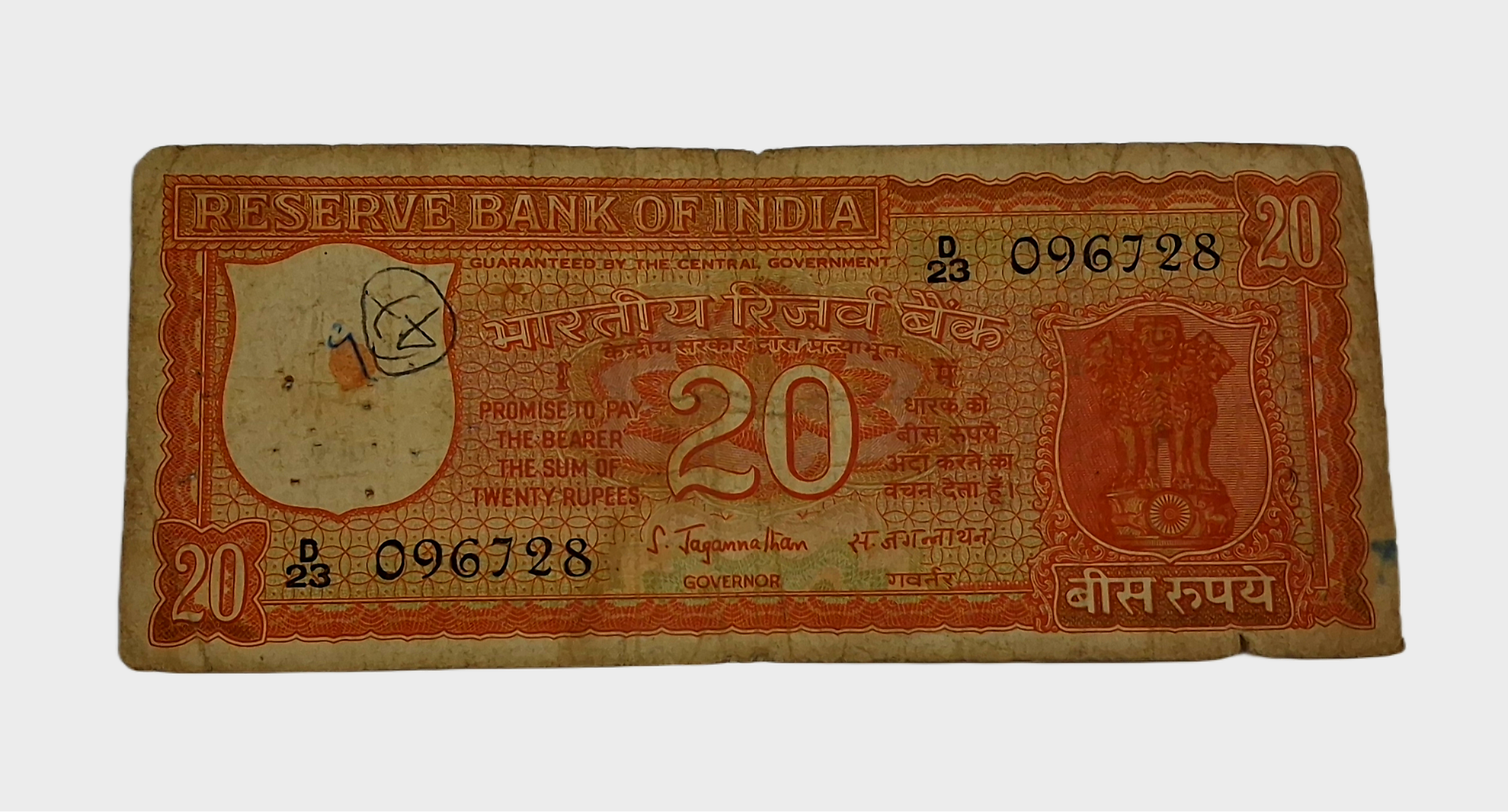 20 Rupees Old PARLIAMENT Issue Signature S. JAGANNATHAN in Used Condition.