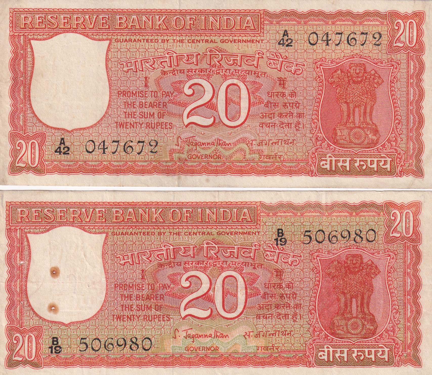 20 RUPEES PARLIAMENT 1st & 2nd Issue S. JAGANNATHAN AU Condition Note