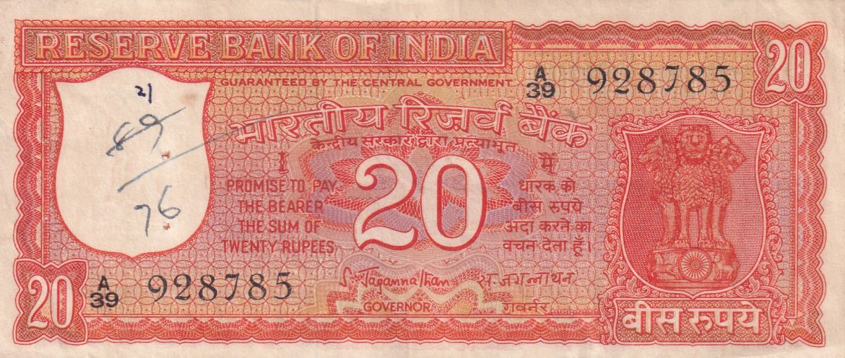 20 RUPEES PARLIAMENT GOVERNOR S.JAGANNATHAN HEIGH GRADE RARE NOTE