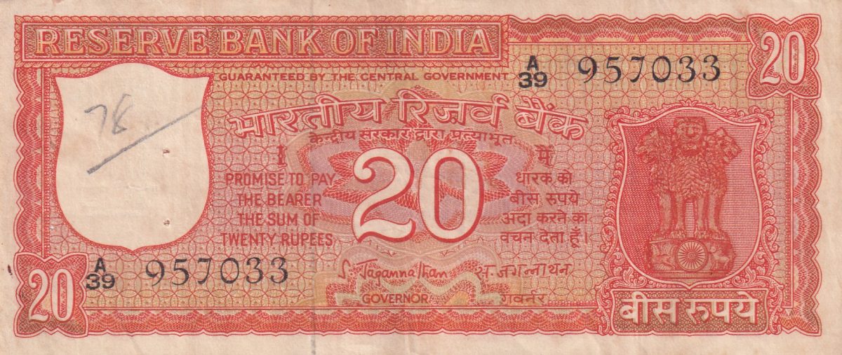 20 RUPEES PARLIAMENT GOVERNOR S.JAGANNATHAN HEIGH GRADE RARE NOTE