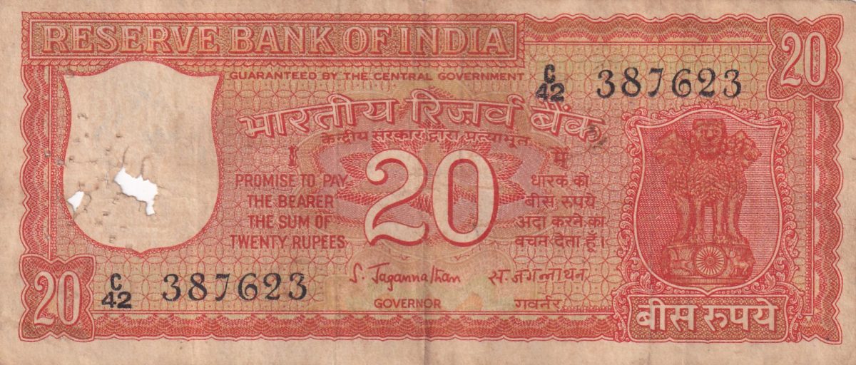 🏷️ Rare 20 Rupees note with Governor S. Jagannathan’s signature
