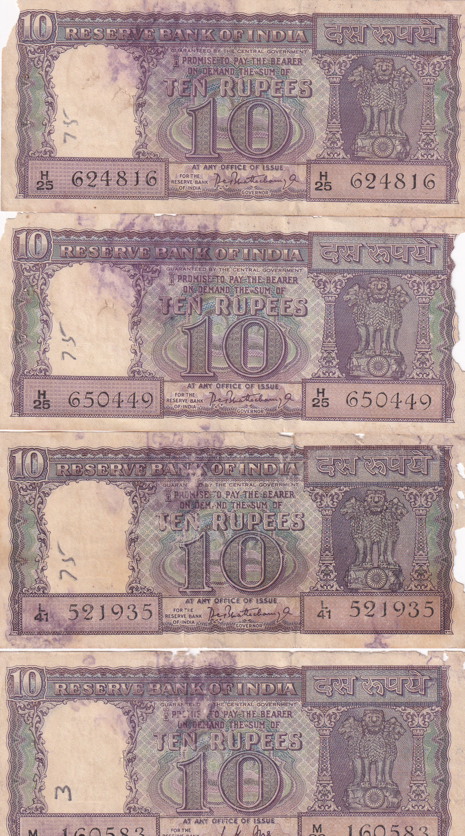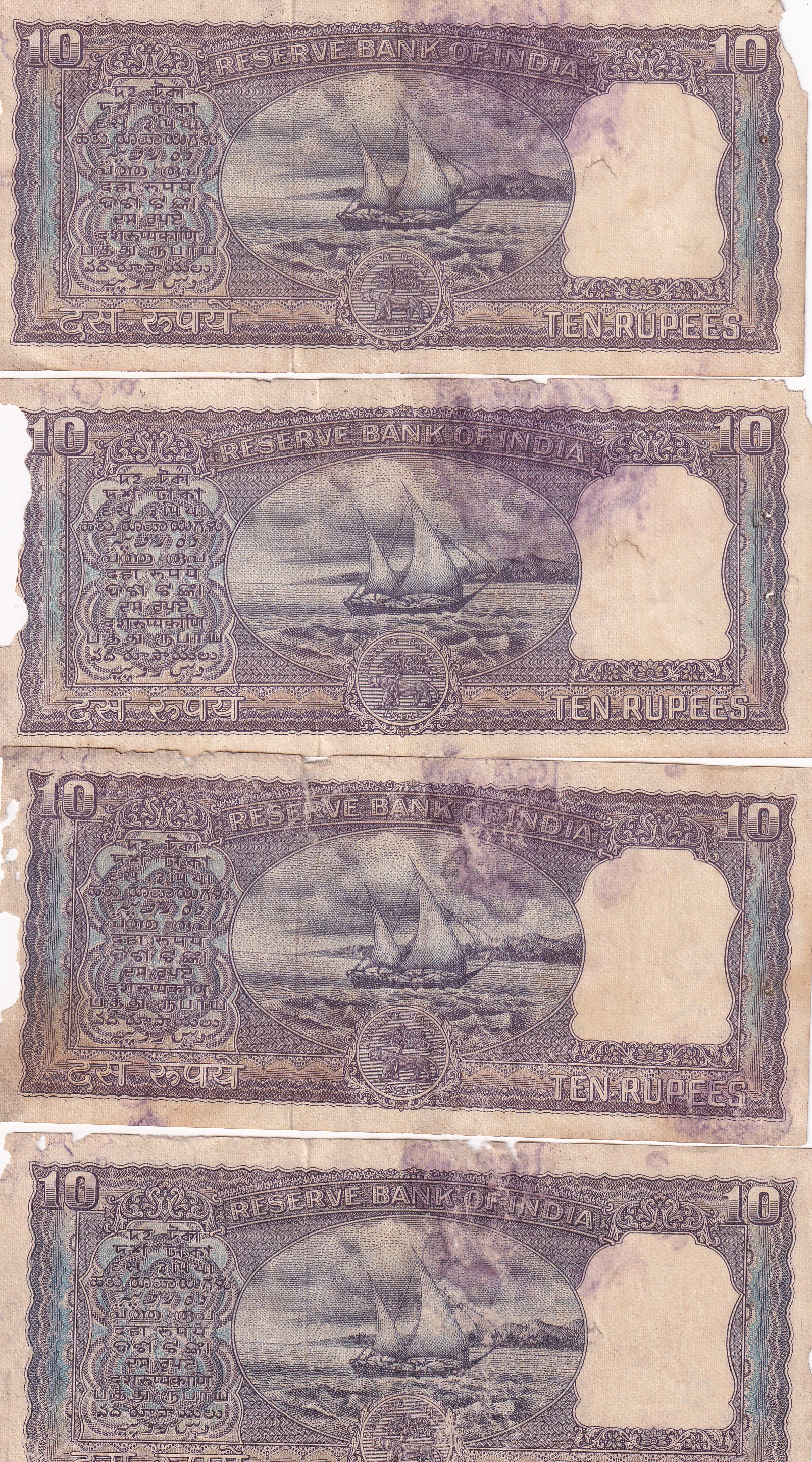 4 PCS Old Issue Diamond 10 Rupees Low Condition Note